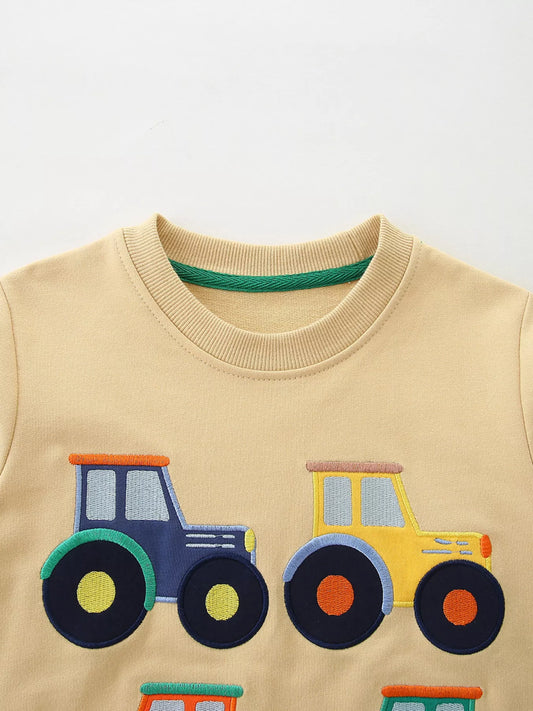 Children's Tractor Embroidered Crew Neck Sweatshirt