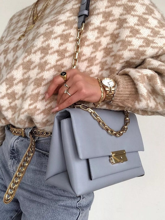 Full Size Houndstooth Pattern Oversized Sweater Plus Size