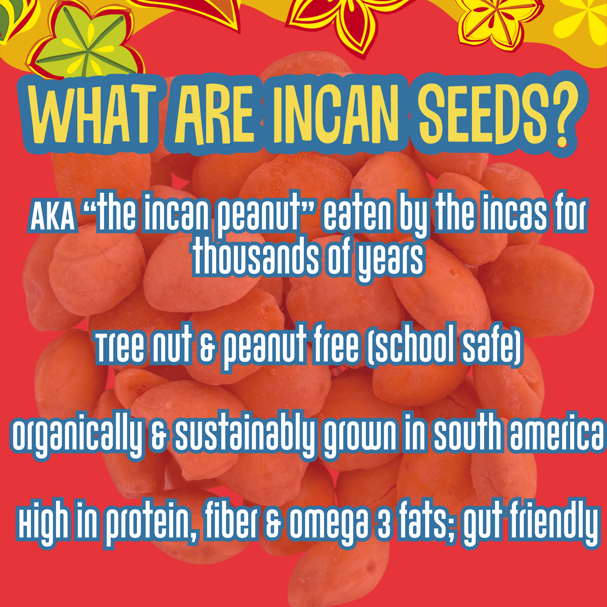 ALSO KNOWN AS "THE INCAN PEANUT" or "SACHA INCHI SEEDS" - Incan Seeds are a roasted, ancient organic superfood seed snack grown in South America and eaten by the Incas for thousands of years. Eaten just like a nut but packed with nutrition and school safe. As seen on Shark Tank!