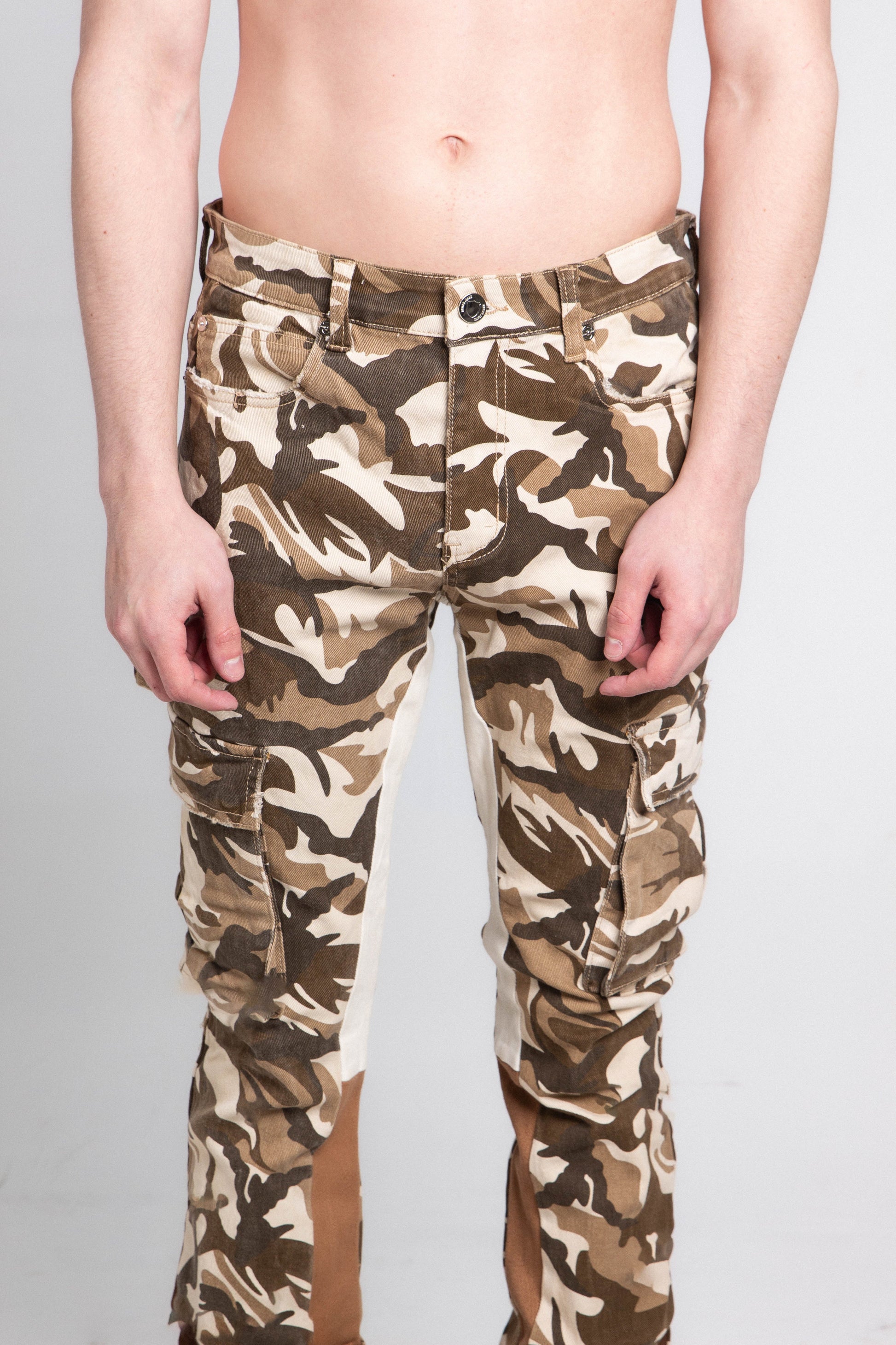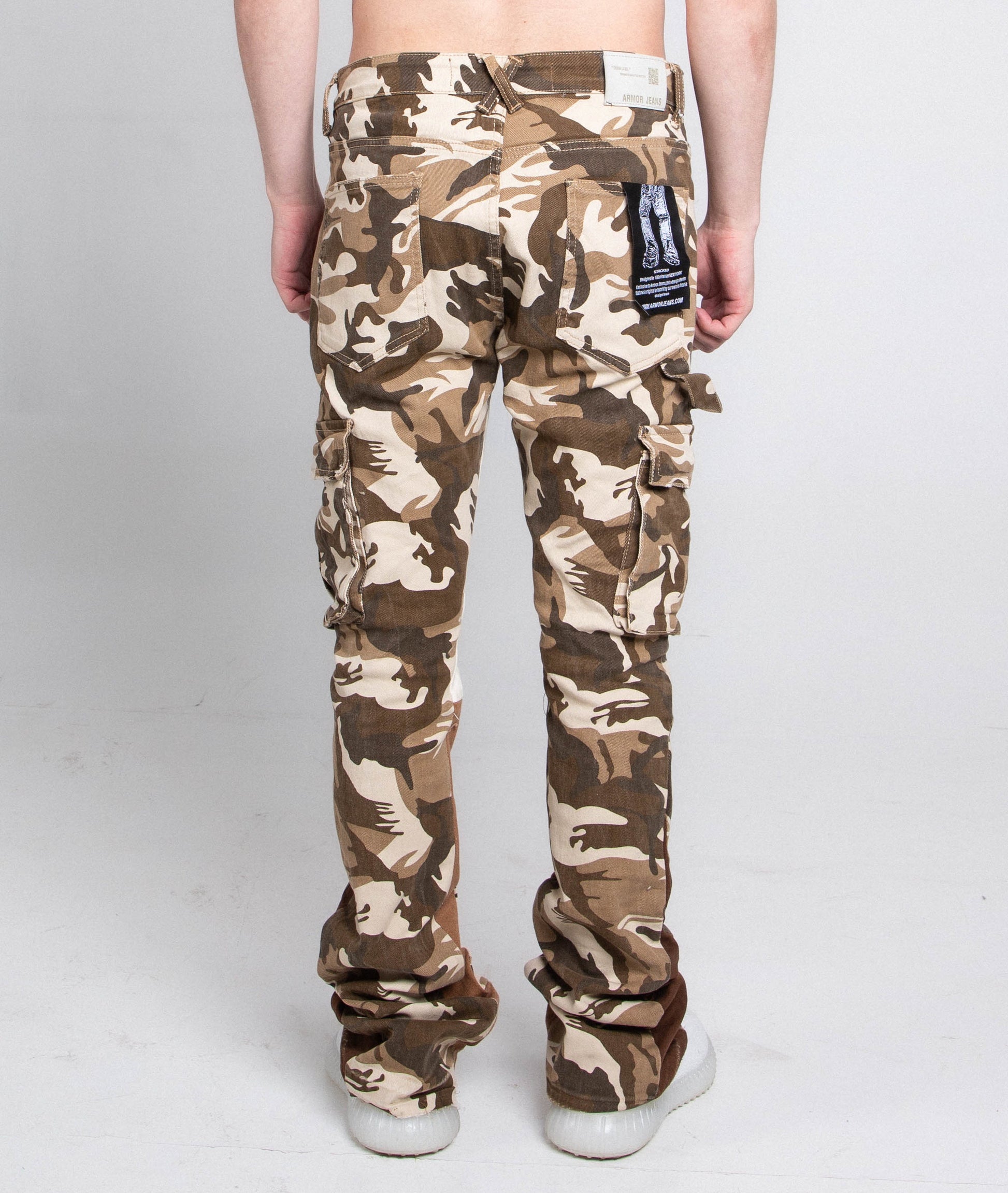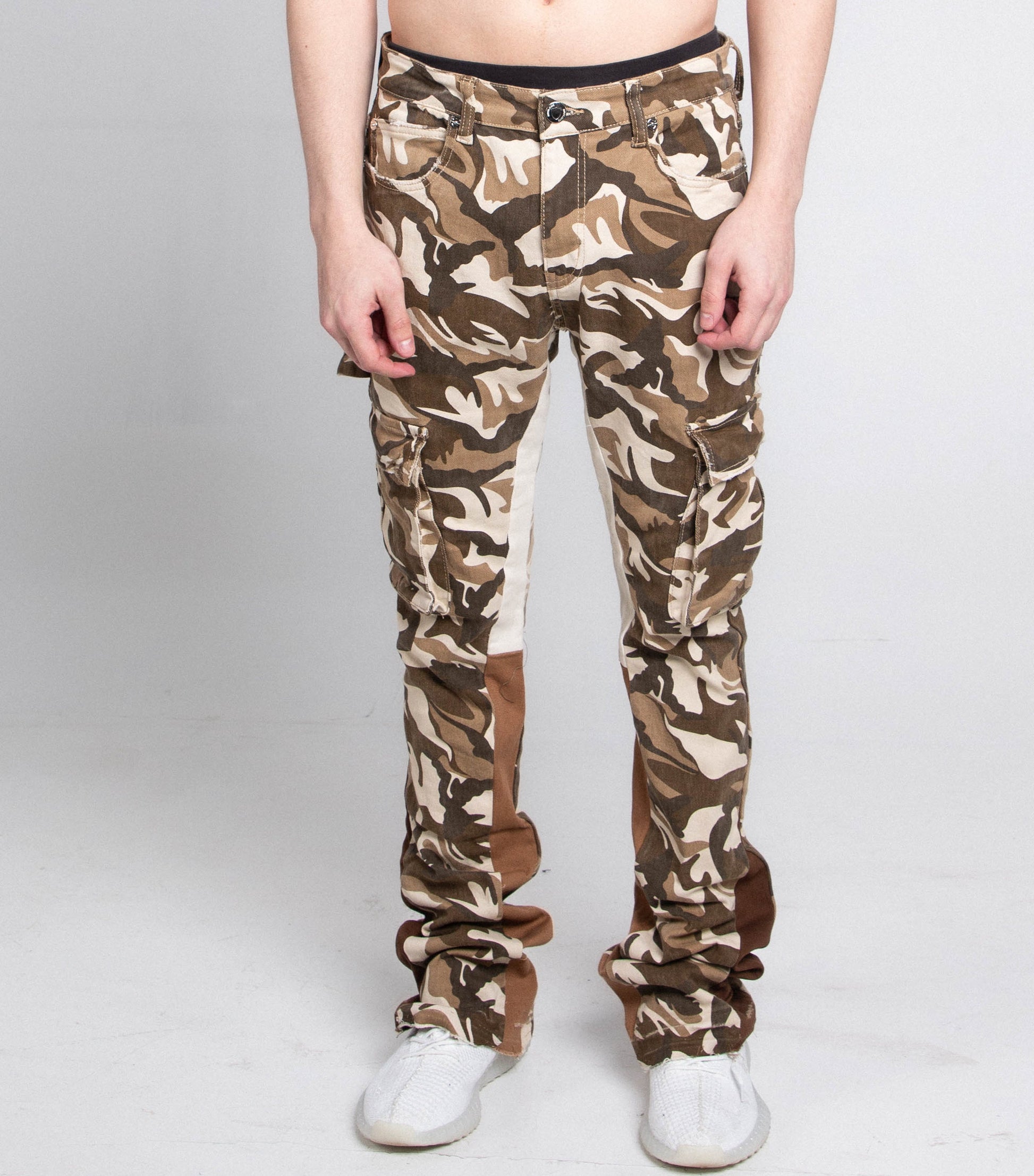 AJS699-11 BROWN CAMO STACKED PANTS