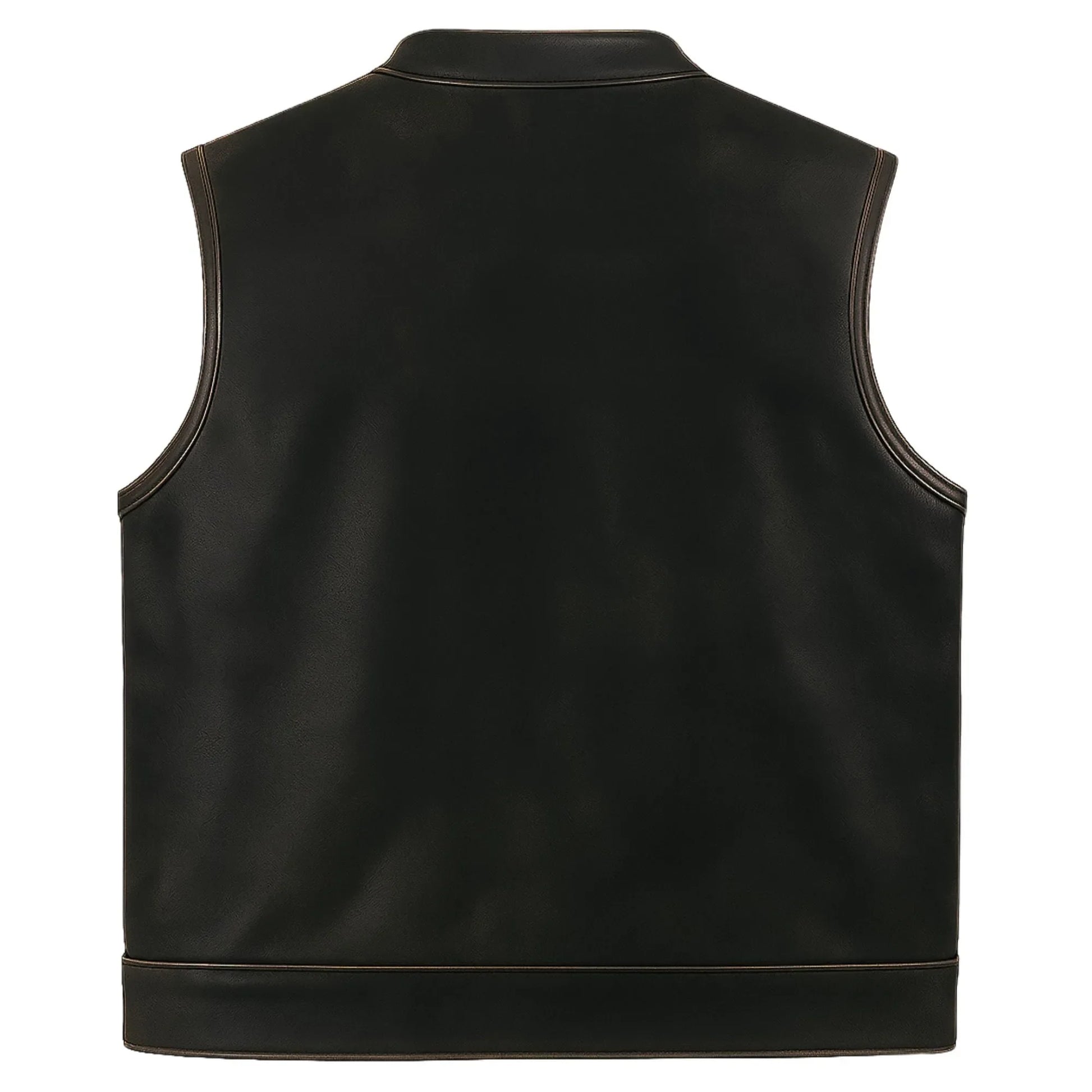 Overall, this Men's Aged Leather Motorcycle Vest combines style, functionality, and rugged charm. For motorcycle enthusiasts, it's the perfect choice!